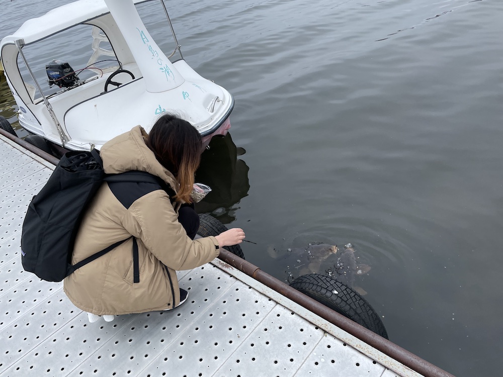 無心でコイに餌をあげる↓