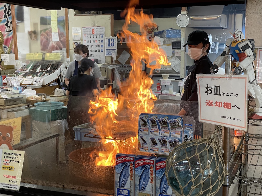 大正町市場でカツオのたたきをいただきます😁