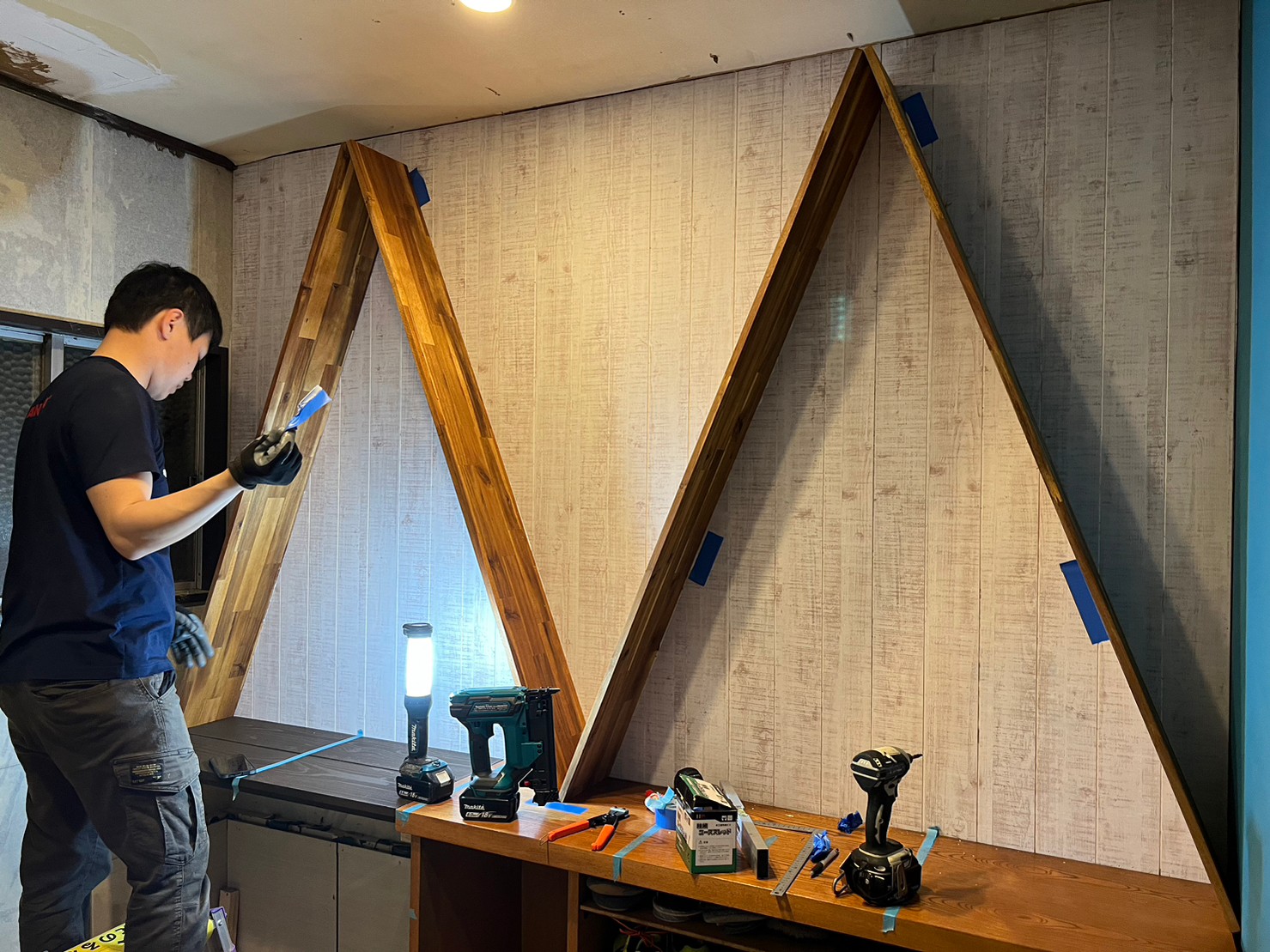 その上から壁材を貼り付け