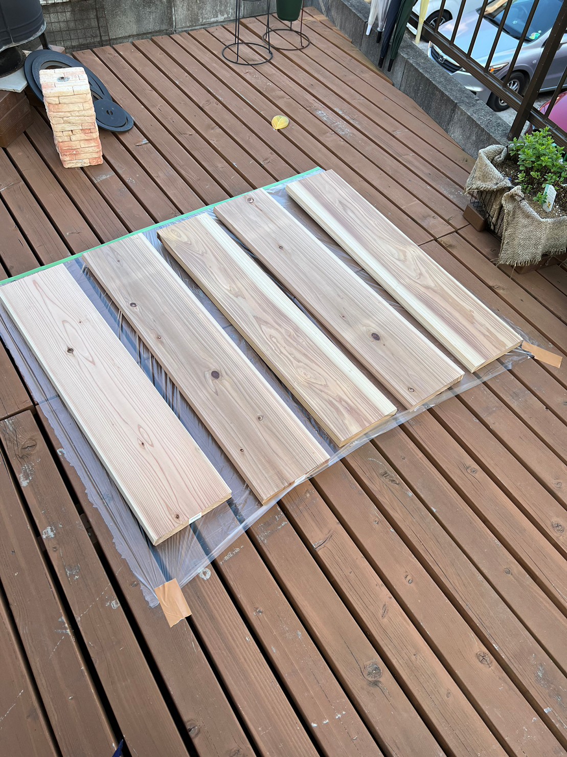 杉の板を塗料でぬりぬり