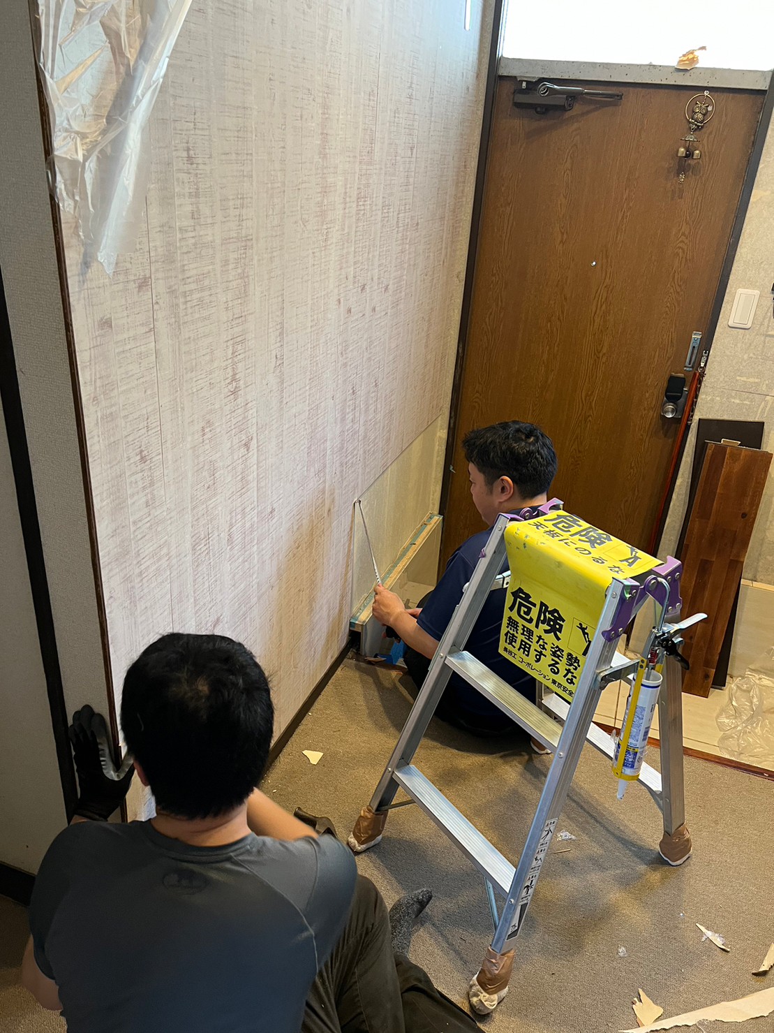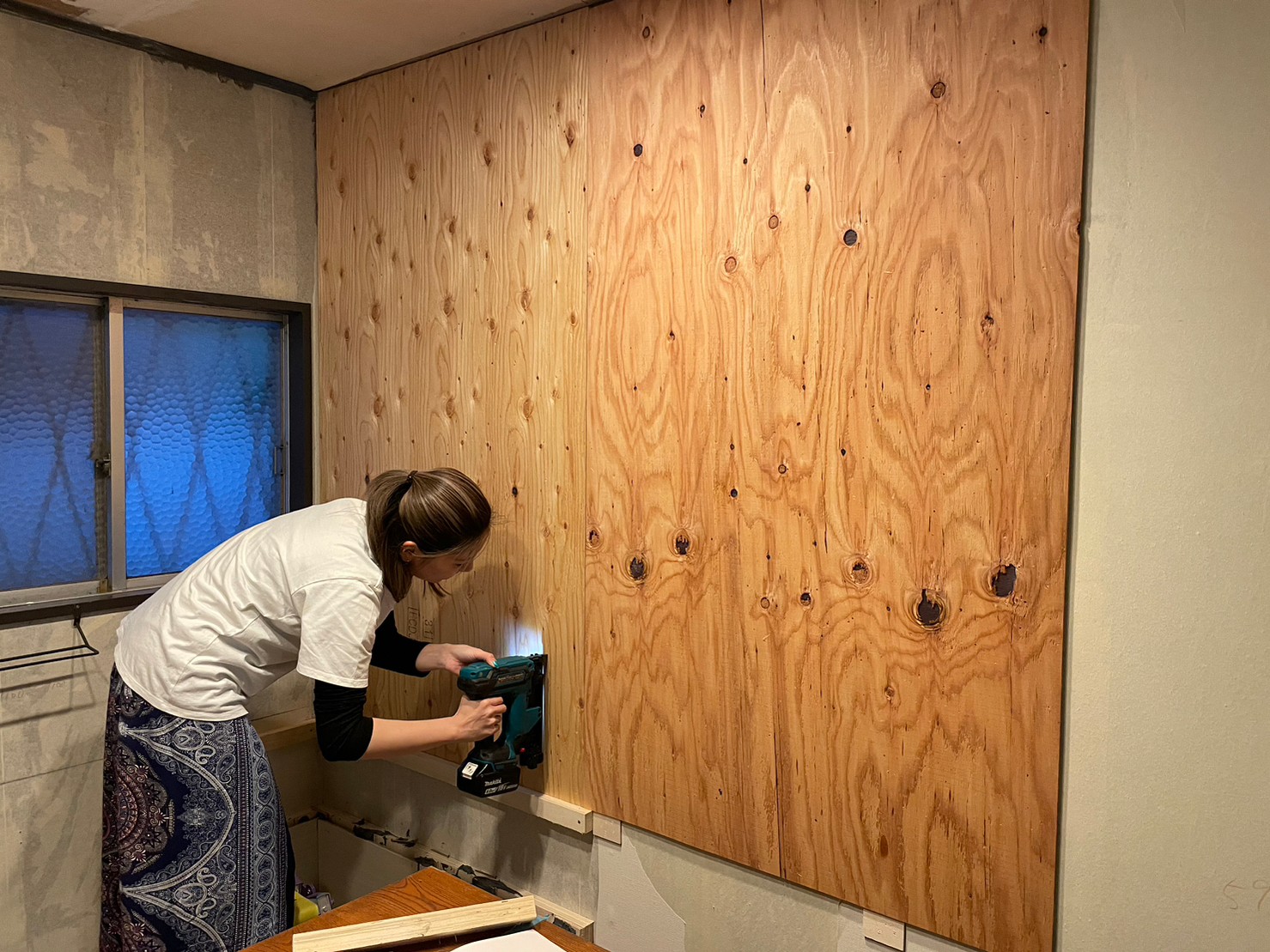 壁紙を剥いでベニヤを固定。。。したんだと思う(笑
