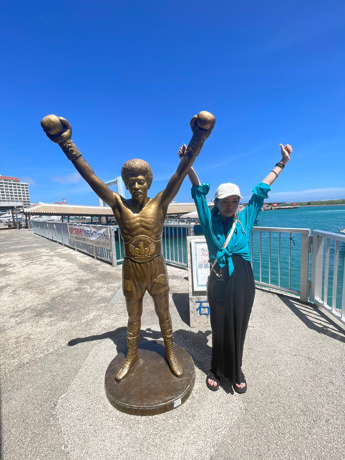 ターミナルには具志堅用高の像があって誰かしらが記念撮影している(笑